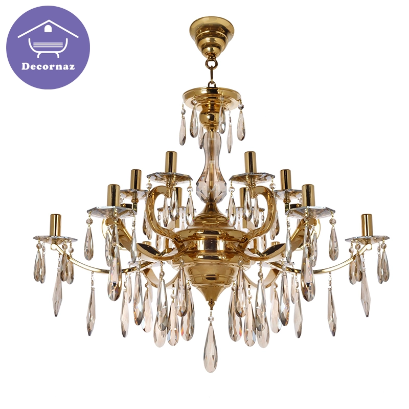 لوستر ۱۲ شعله کریستالی طلایی لوستر پذیرایی شیک و لوکس
