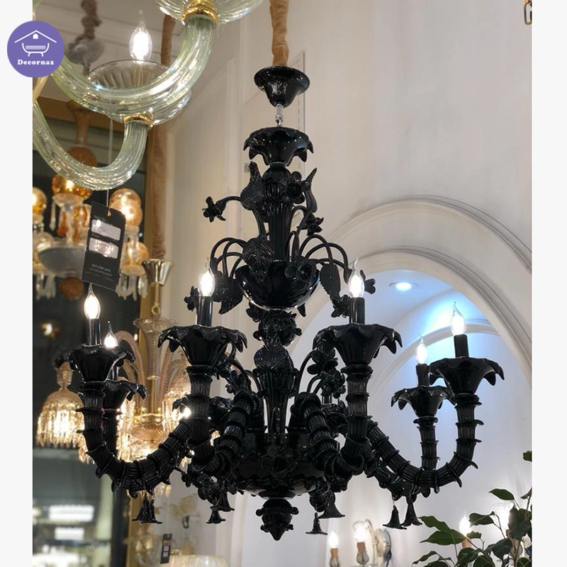 لوستر طرح مورانو مشکی با گلبرگ برجسته ترکیب ظرافت، نور و طراحی لوکس