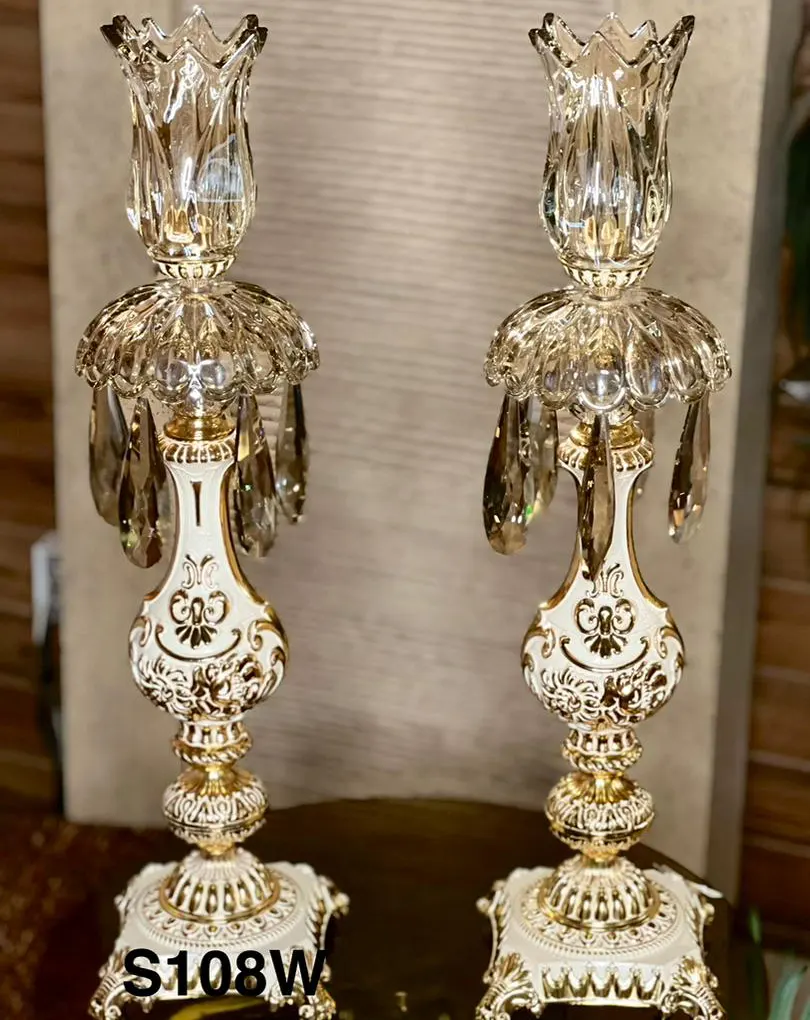شمع دان برنزی سفید لاله کوتاه