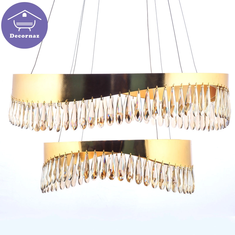 لوستر آویز دو طبقه کریستالی شیک و لاکچری با آبکاری طلایی