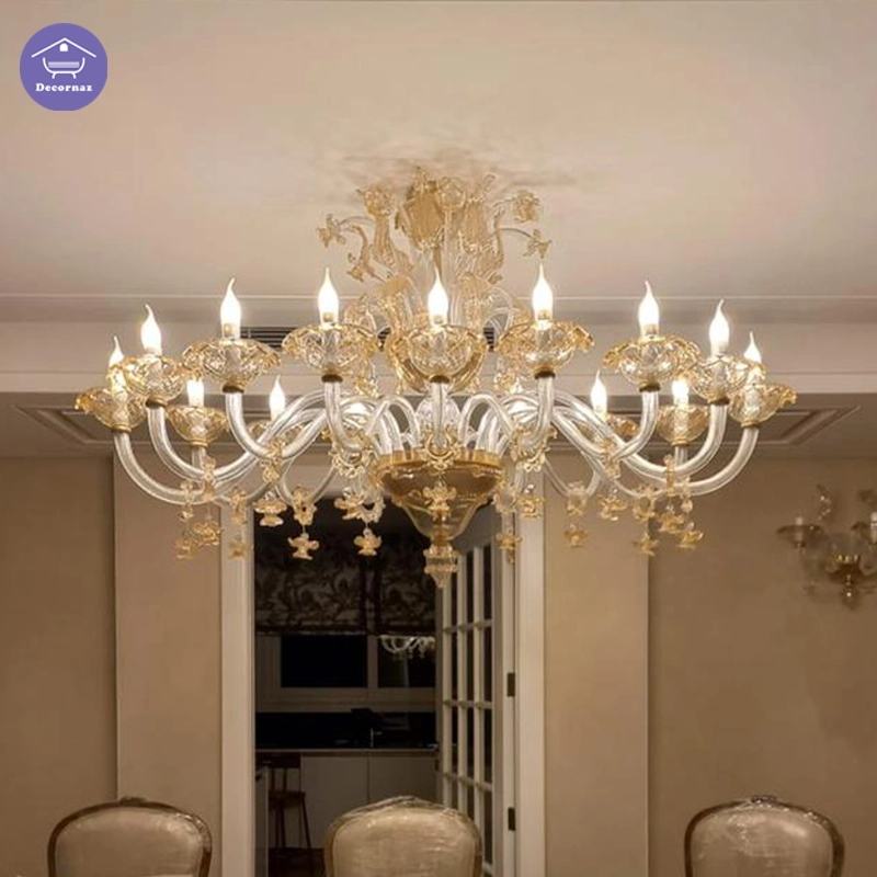 لوستر مورانو ایتالیایی چند طبقه شفاف با جلوهای خیرهکننده و لوکس