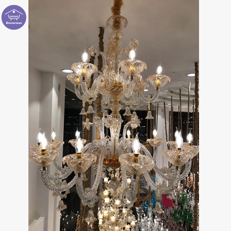 لوستر مورانو آنتیک طلایی سفید خارجی شاهکار نورپردازی برای تالار