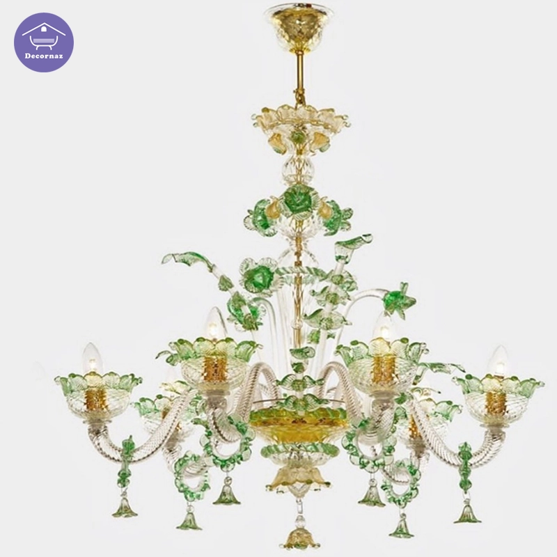 لوستر مورانو سلطنتی شفاف ۲۴ شعله لوکس طبقاتی