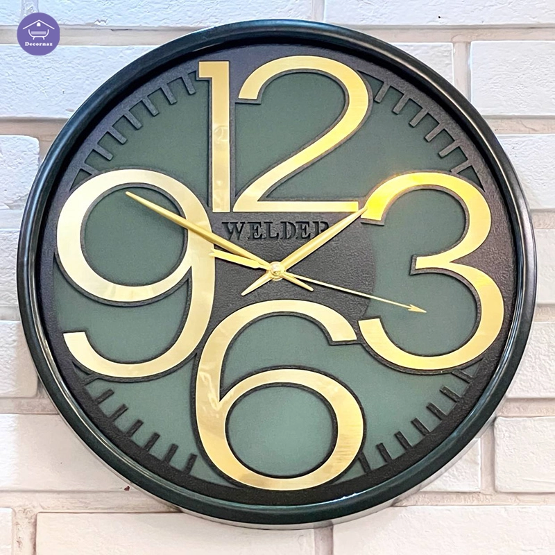 ساعت دیواری سبز طلایی ولدر مدل لاکچری مشکی براق ترکیبی از لوکس، مدرن