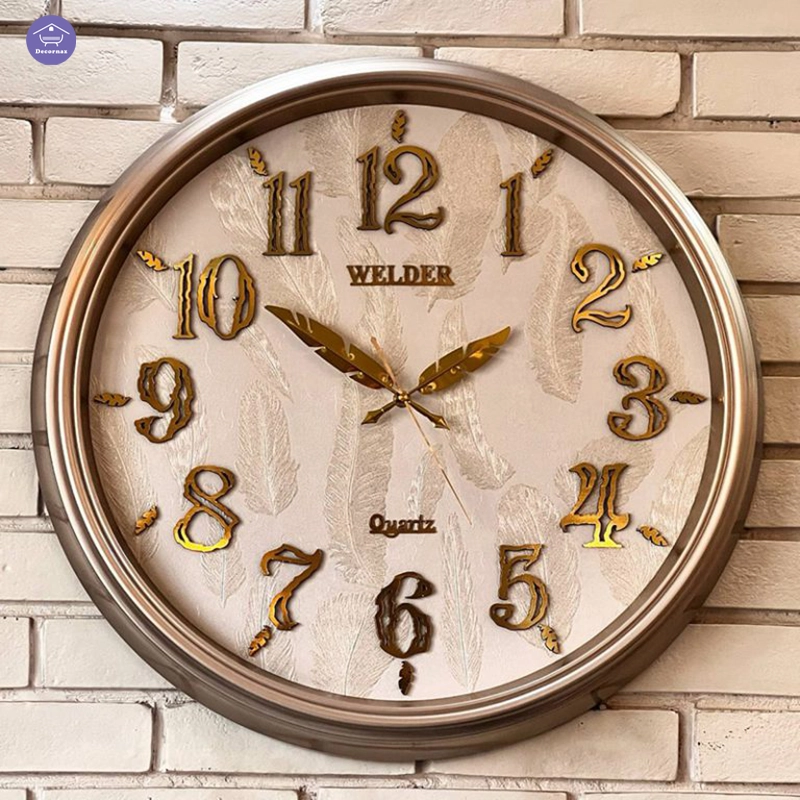 ساعت دیواری کرم‑طلایی ولدر فانتزی با طراحی متفاوت و جزئیات ظریف، گزینهای ایدهآل برای افرادی است که به دکوراسیون خاص و غیرتکراری علاقه دارند. ترکیب رنگ کرم با طلایی، حس گرما و لوکس بودن را همزمان به فضا منتقل میکند.